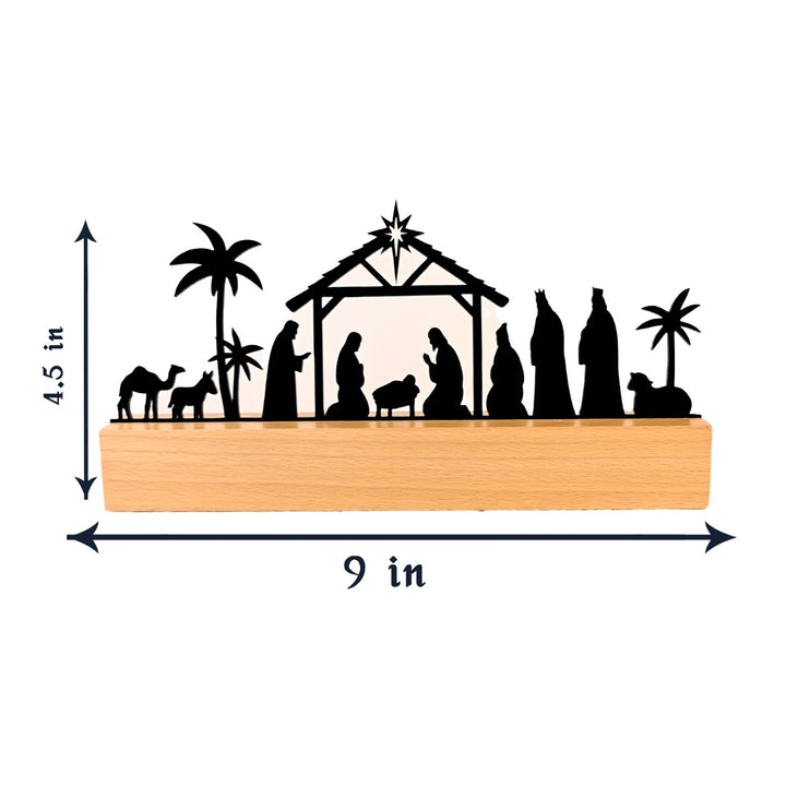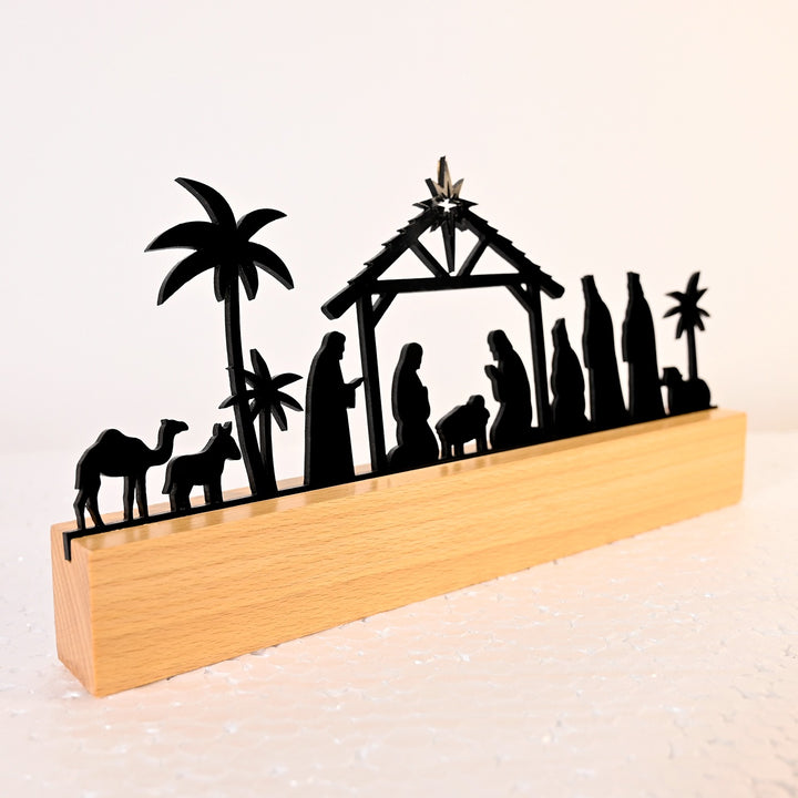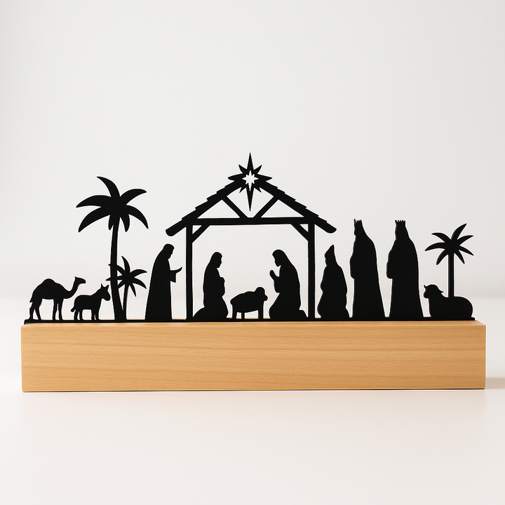 Classic Nativity Scene Silhouette – Black Acrylic & Wooden Base