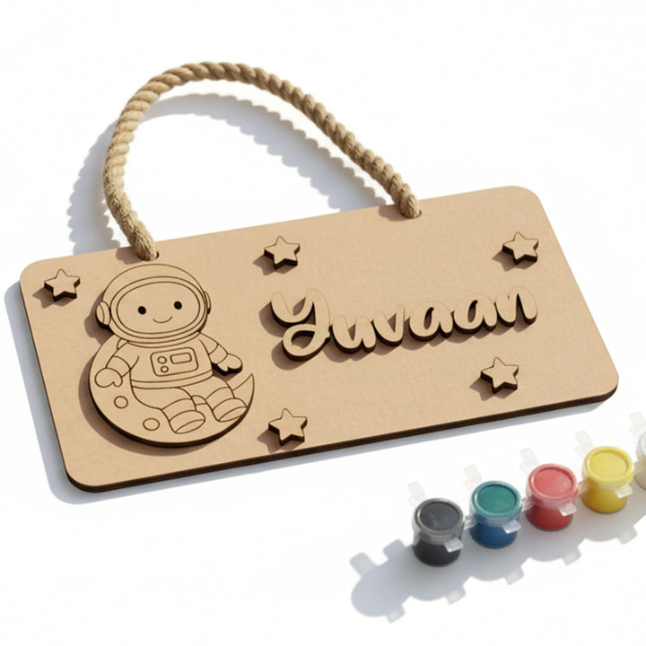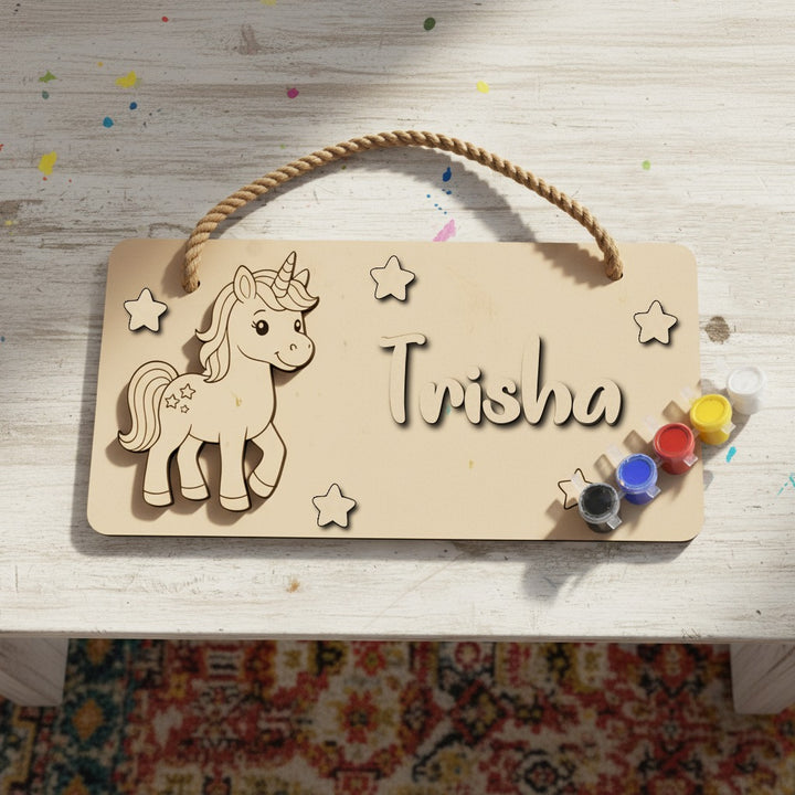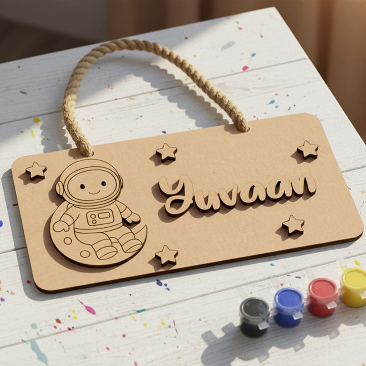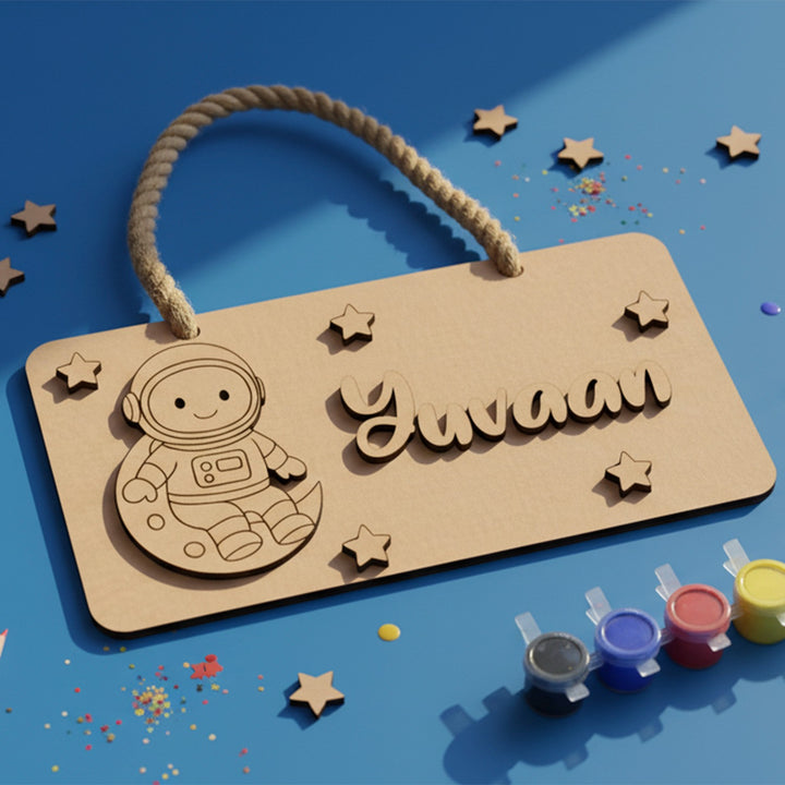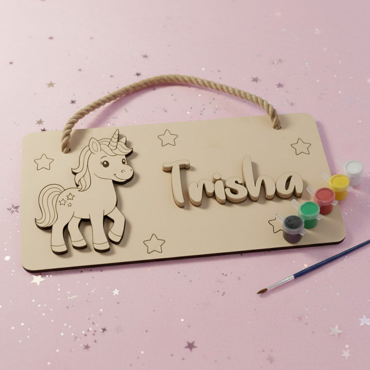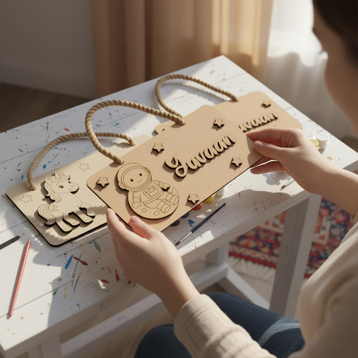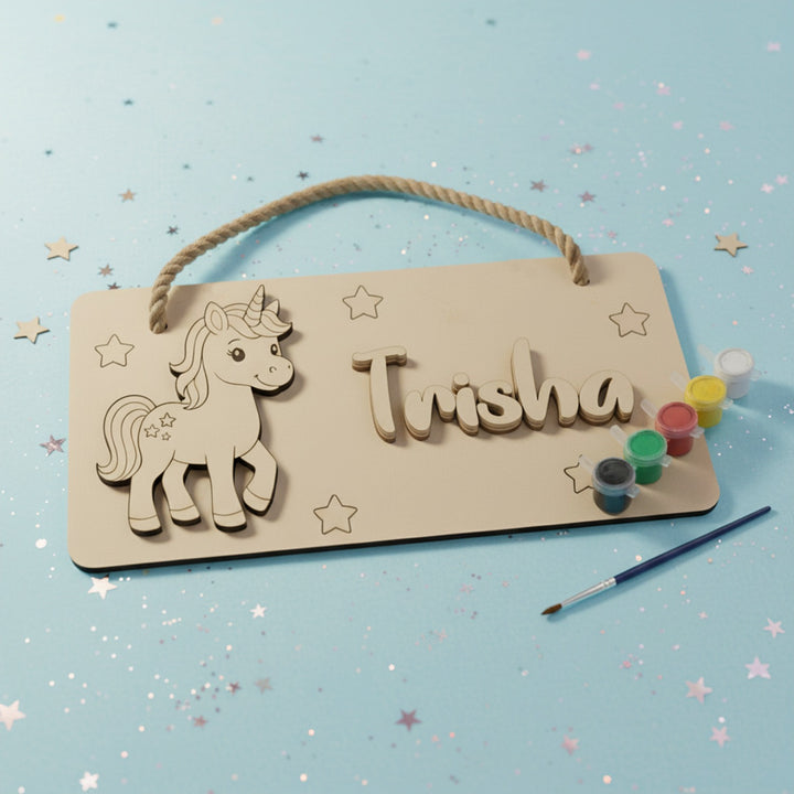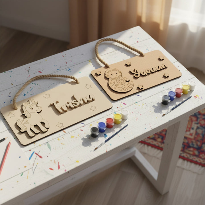 DIY Personalised Name Plate Kit | Kids Birthday Return Gift | MDF with Colours & Brush