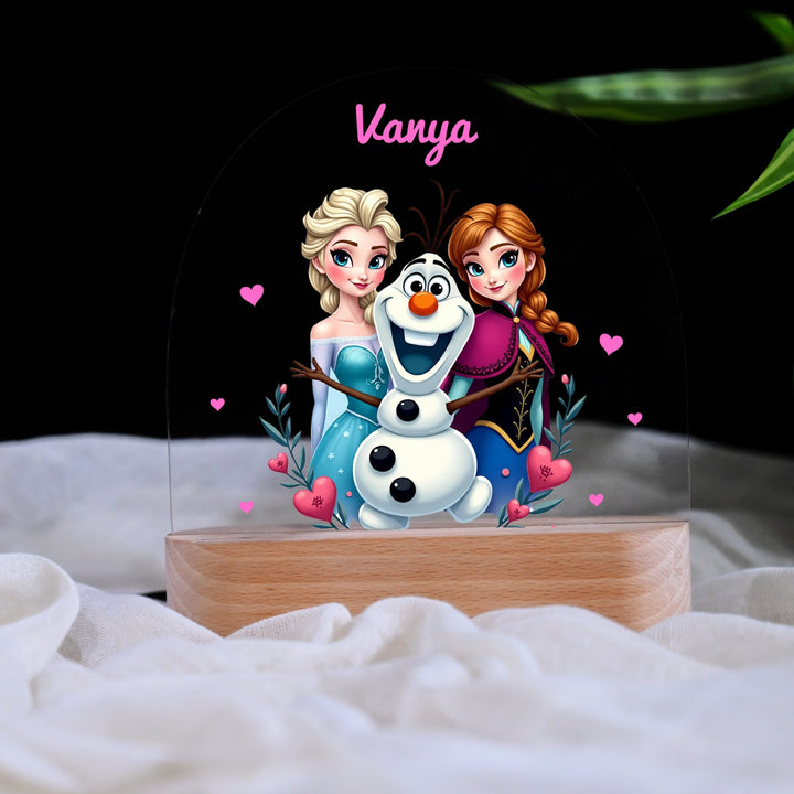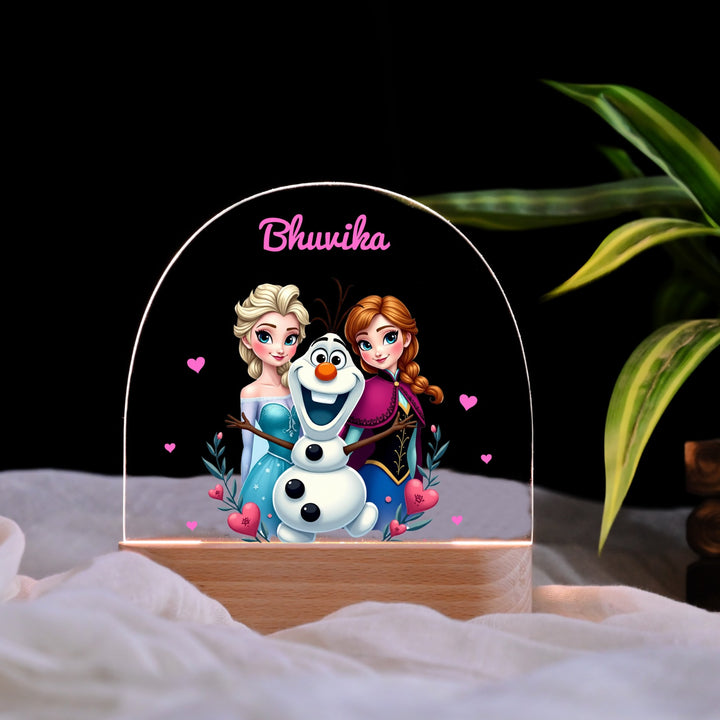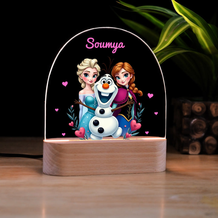 Introducing our enchanting Personalised Frozen Theme Kids Night Lamp, designed to bring a touch of Arendelle magic to your child's bedroom. This customisable night lamp features beloved characters from the hit Disney movie, with your child's name beautifully integrated into the design. Made with safe and durable materials, it provides a soothing glow, comforting your little one as they drift off to sleep. A perfect gift for any Frozen fan, our night lamp is sure to cast a spell of delight, making bedtime a dream come true.