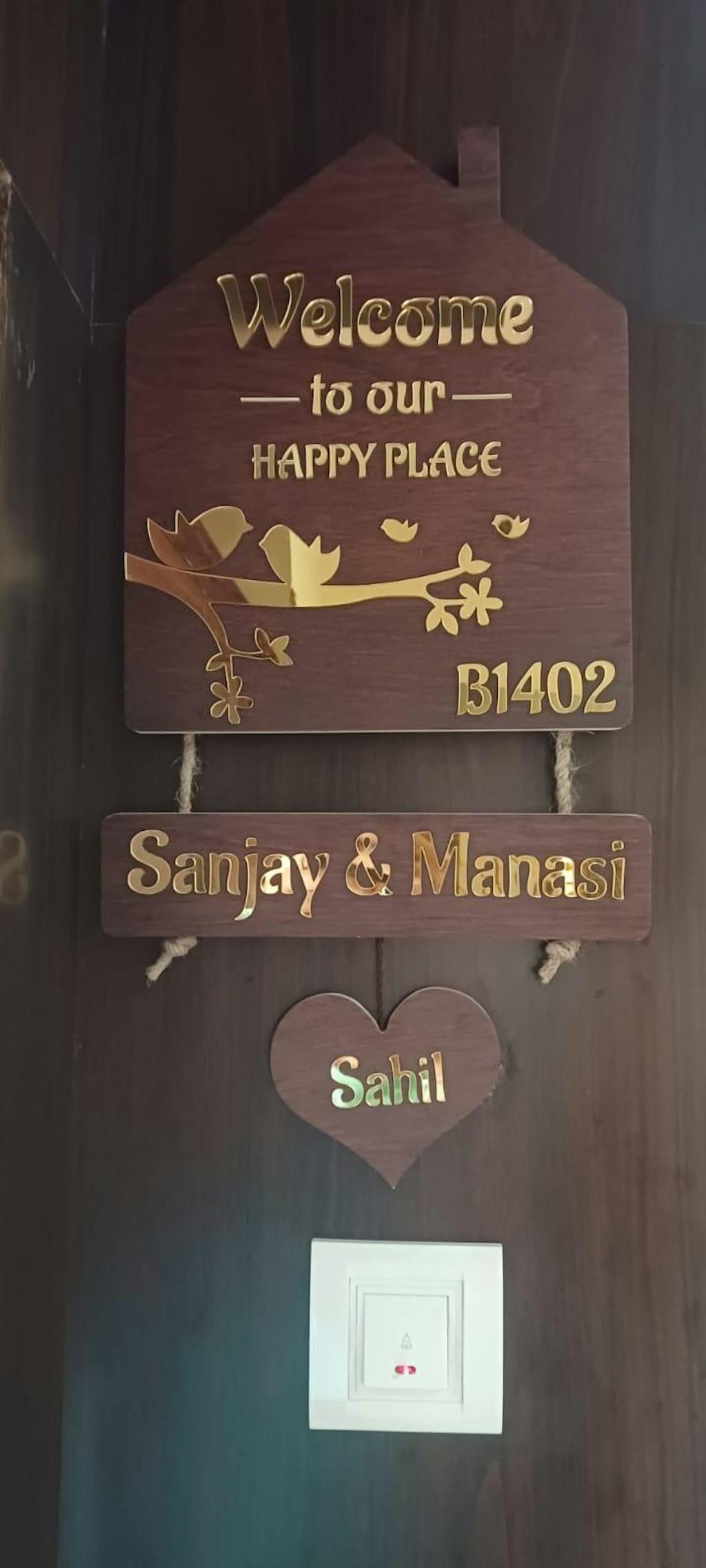 Premium 3D Brown Hut Style Name Plate With Golden Acrylic
