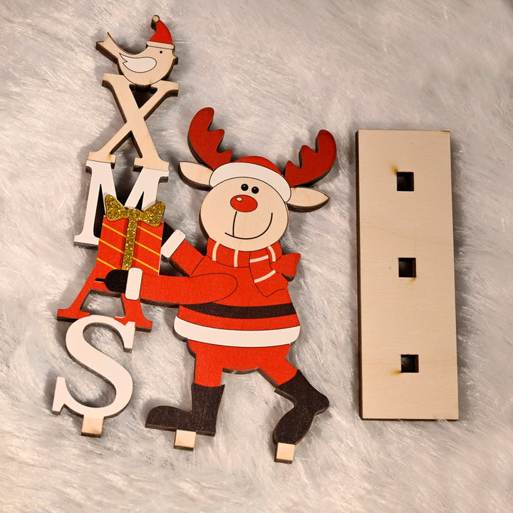 Wooden Christmas Table Decor – Santa Reindeer with XMAS