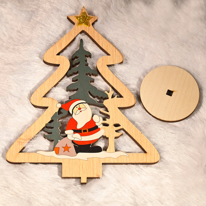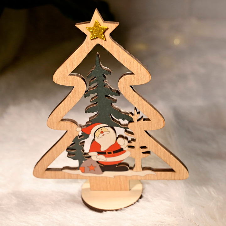 Wooden Christmas Table Decor – Santa & Tree Scene