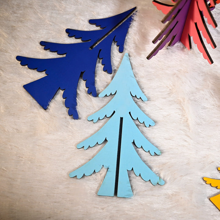 Wooden Multi-Colored Christmas Trees – Set of 6